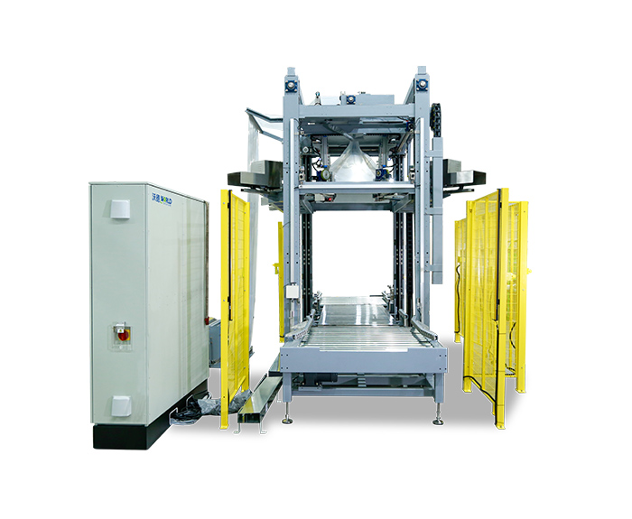 应用领域:应用于各个行业对码放在栈板上的产品进行自动套膜包装。